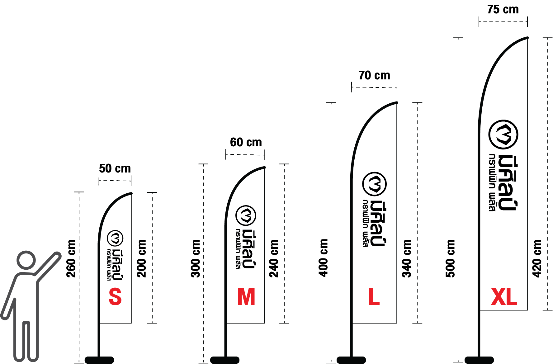ออกแบฟรีทุกป้าย จะใส่ข้อความ รูป โลโก้ ได้ทุกแบบ ทุกสี จัดส่งได้ทั่วประเทศ งานด่วน ผลิตไว ภายใน 2 วัน ผลิตเองทุกขั้นตอน สีสด สวย คมชัด โดดเด่น เรียกลูกค้า เพิ่มยอดขาย ธงชายหาดมี 4 Size S, M, L, XL Size S M L XL ความสูงเสา 260 x 50 cm 300 x 60 cm 400 x 70 cm 500 x 75 cm ความสูงผ้าธง 200 x 50 cm 240 x 60 cm 340 x 70 cm 420 x 75 cm นิยมใช้สำหรับ หน้าร้านค้า, ออกบูธ พื้นที่น้อย หน้าร้าน พื้นที่ 1-2 คูหา หน้าร้าน บริษัท อาคาร พื้นที่เยอะ โชว์รูม เต้นท์รถ จัดอีเว้นท์ นิทรรศการ พื่นที่ใหญ่
